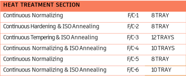 We have a continuous type Heat Treatment Automatic Plant with a capacity of 42 tons/Day, Numerous mistake-proofing systems are installed for in-process quality control with automatization, PLC control, and a SCADA recording system. This furnace gives our product minimized internal stresses, and grain structure refinement and improves mechanical as well as physical properties.